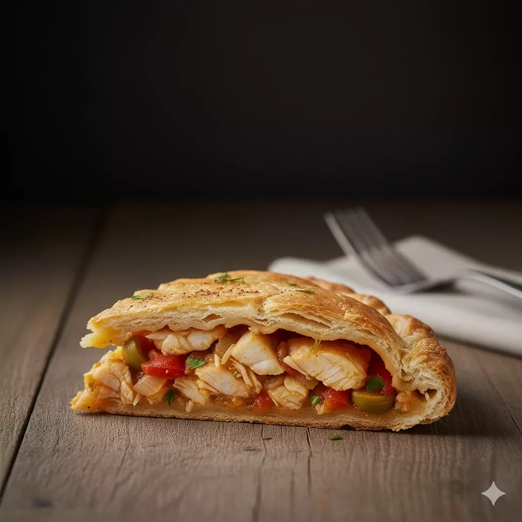 Tamaño grande. Empanada gallega tradicional, elaborada con masa fina y suave, rellena de guisos caseros como atún, carne o bacalao con pasas.